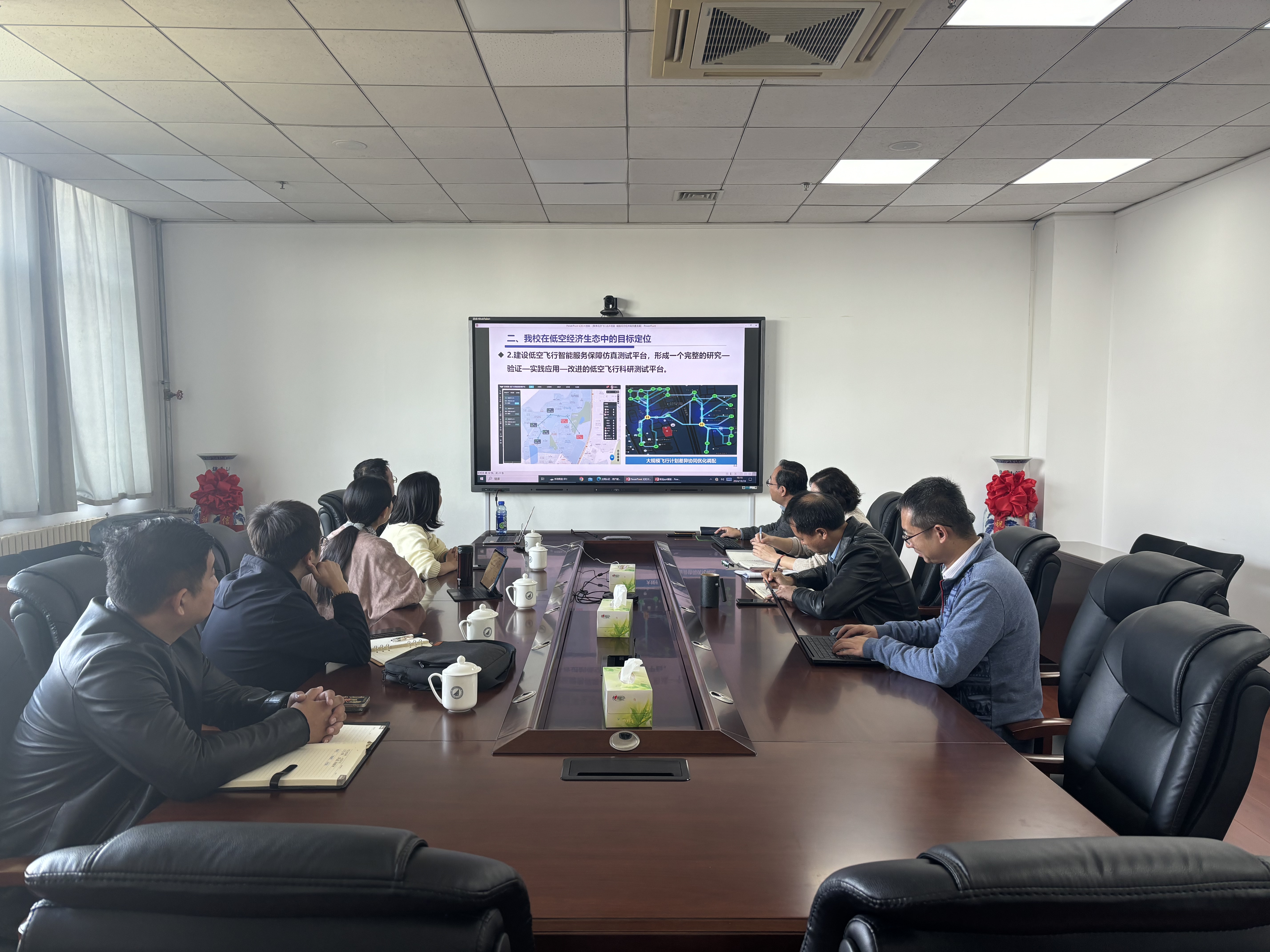 会上,杜军威欢迎刘冰一行的到来并介绍了学院低空飞行和ai for science方面的工作。他希望未来学院能在科学研究、项目合作、学生培养等方面又更深入的交流。